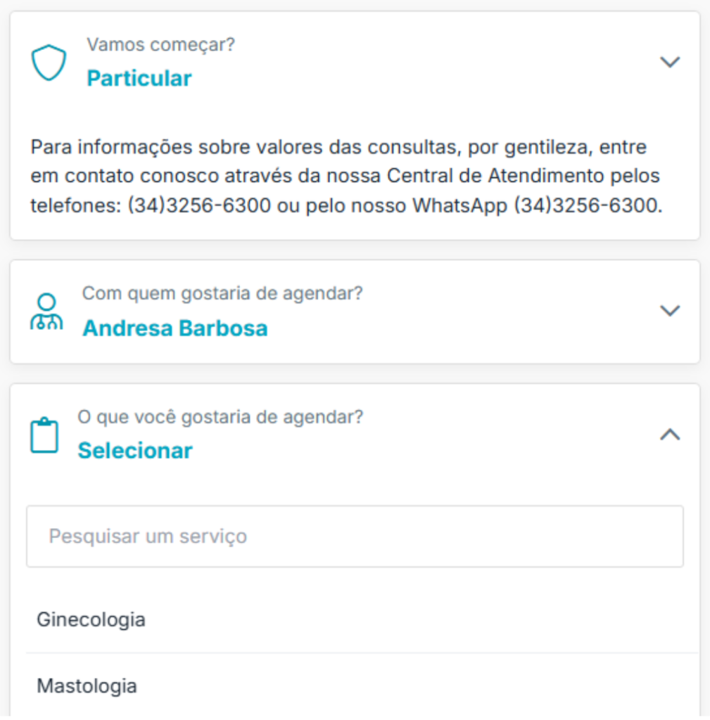 - Por fim, selecione se a consulta será de "Ginecologia" ou "Mastologia"